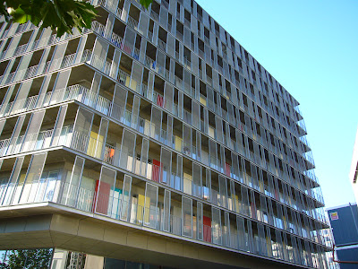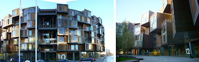 Gasometer - 4 old gas tanks were renovated to residential - mixed use. A crinkled tower leans on one of the tanks, a shopping mall extends throught he 2nd floors of each cylinder and links up to a new cinema complex (not shown because it was ugly). A new subway station was added at the main entry. As much as I liked the grassy berms, I think the project would have been more successful and vibrant if it had opened up a continuous street facade: otherwise it seemed kind of dead. However, in all it was a well done redevelopment.