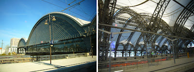 Our first long train ride from Berlin to Prague. Not so long actually, only about 4 hours, but a nice break from flying. We whizzed by this station in Germany. I forgot the station name, but this is pretty close to what I had in mind for my competition entry: a large, welcoming, repetitious structure with a luminous canopy. l wish I had this as a precedent earlier. I usually wince at fabric-tecture due to is tendency to just show off it's warping capabilities, but I like this example in particular because it's used in a way to facilitate the larger space, not dominate it.