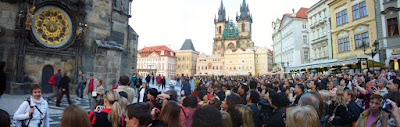 the collection of lemmings (myself included) on the hour to watch an astronomical clock do what??? (Nobody understands the clock, not even the tour guide on the left with the microphone and speaker strapped to her chest). "yeah but, its cooool."