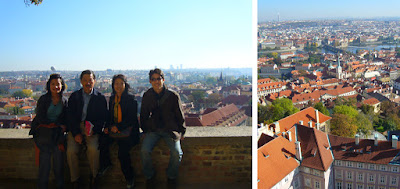 Mom and Dad, reading my list of sites to study, broke the bank and traveled exactly half way around the world (from Hawaii) to tag along in Prague and Vienna. They actually wanted to test out how bad jetlag could get, but they kept up with us on our hike from Staro Mestske to Prazsky Hrad (Prague Castle), and back. The view of the Castle's outcroping buildings: the terracotta tile roof shapes tell the story of the area's patchwork evolution; Charles Bridge and the old town in the background. With warm and sunny weather and a great view, we topped off a long walk with a round of Pilsner Urquells (water with bubbles for Asti).