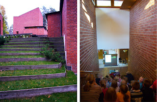 Saynatsalo Town Hall. We stayed in 'Elissa' one of 2 guestrooms. The building program consists of: the officials' offices, meeting rooms, and council chamber; a library; retail spaces; and living units, centered around the raised courtyard.