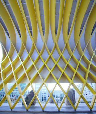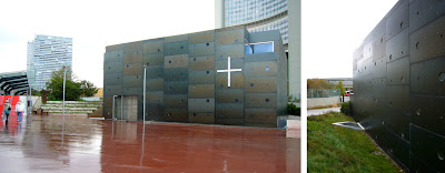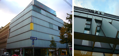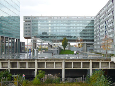 Gasometer - 4 old gas tanks were renovated to residential - mixed use. A crinkled tower leans on one of the tanks, a shopping mall extends throught he 2nd floors of each cylinder and links up to a new cinema complex (not shown because it was ugly). A new subway station was added at the main entry. As much as I liked the grassy berms, I think the project would have been more successful and vibrant if it had opened up a continuous street facade: otherwise it seemed kind of dead. However, in all it was a well done redevelopment.