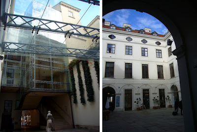 Ferstel Passage, much more stately and formal then the ones in Prague. Announced at the street with a colonnade, this set of linked courtyards has shops and access to offices. A skylit corridor leads to a small hexagonal atruim.
