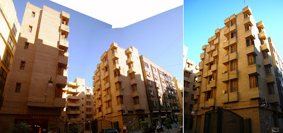 Nice housing project we stumbled upon. Brick and wood windows and louvers, simple but bold palatte.