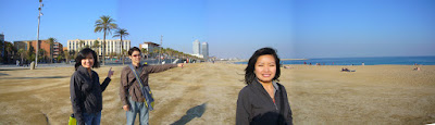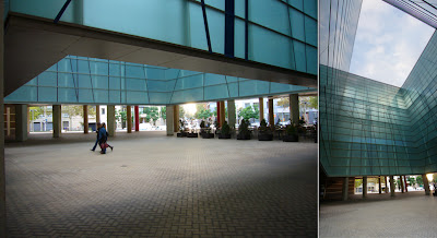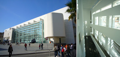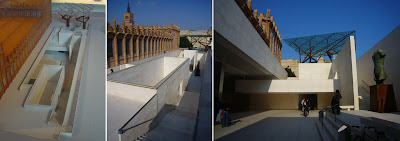 Edifici Forum, Herzog + De Meuron. Asti thought this was the worst building she'd seen so far, referring to the parking lot like asphalt floor, dark atmosphere, funky construction/details, and the weird-for-weird sake geometries. Photographs are snazzie though, and the mirrored lightwells are "coooool dude", was my response.