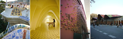 Gaudi's parc Guell, Casa Botin, bunch of clay vases on the wall, Miralles' mercat St. Catarina.