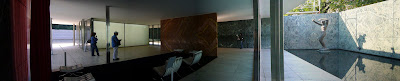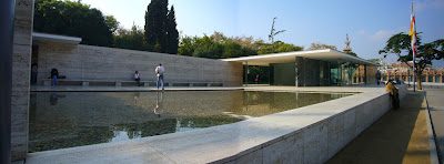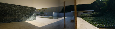German Pavillion, Mies van der Rohe. I was expecting to see every joint, edge, and mullion to align. That wasn't the case. It was the free flowing spaces, blurred distinction between the outdoor and indoor spaces, facilitated by the clear definition of each plane, wall and column that made this such a memorable experience.