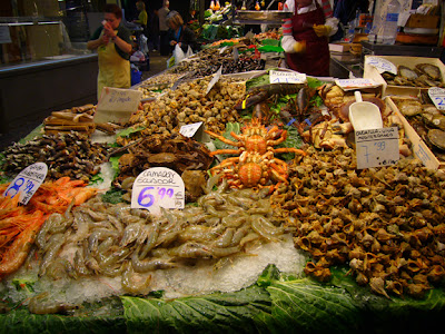Woahhh. I can only guess at what half of these were. Wish I could try each and every one. I read that Barcelona, a seaport town, only supplies 15% of the seafood it consumes. They eat a lot of fish, and jamon.