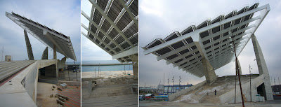 Barcelona has redeveloped it's waterfront, with lots of public spaces, swimming facilities, a massive PV array structure (shown here),