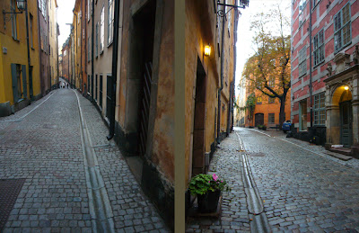 the back street, a well lit stair to offices, and another stair and set of atrium that were
