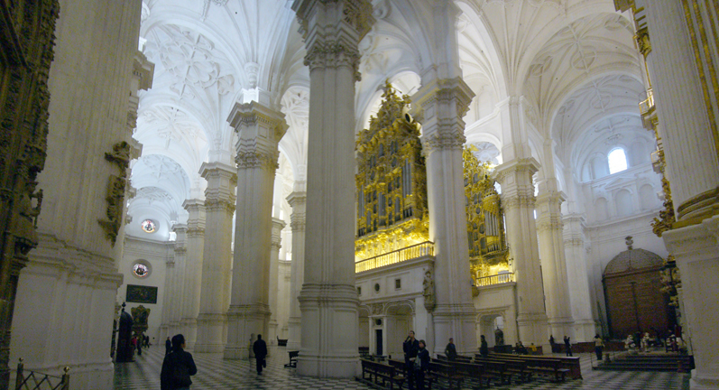 Granada's Cathedral. Not the biggest in Europe (not in top 4 anyway), but the uplighting and the white makes it feel much larger than others on our trip.